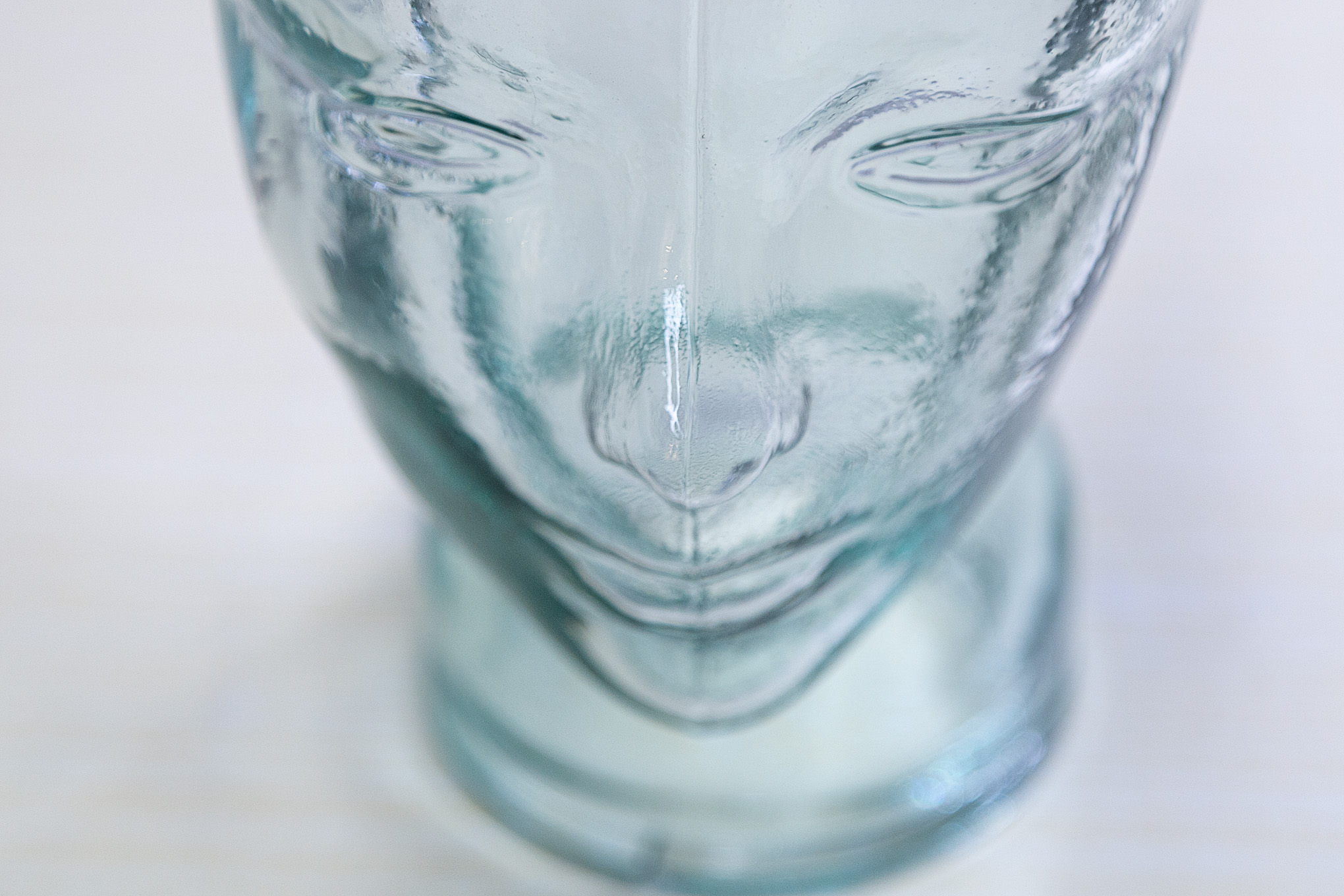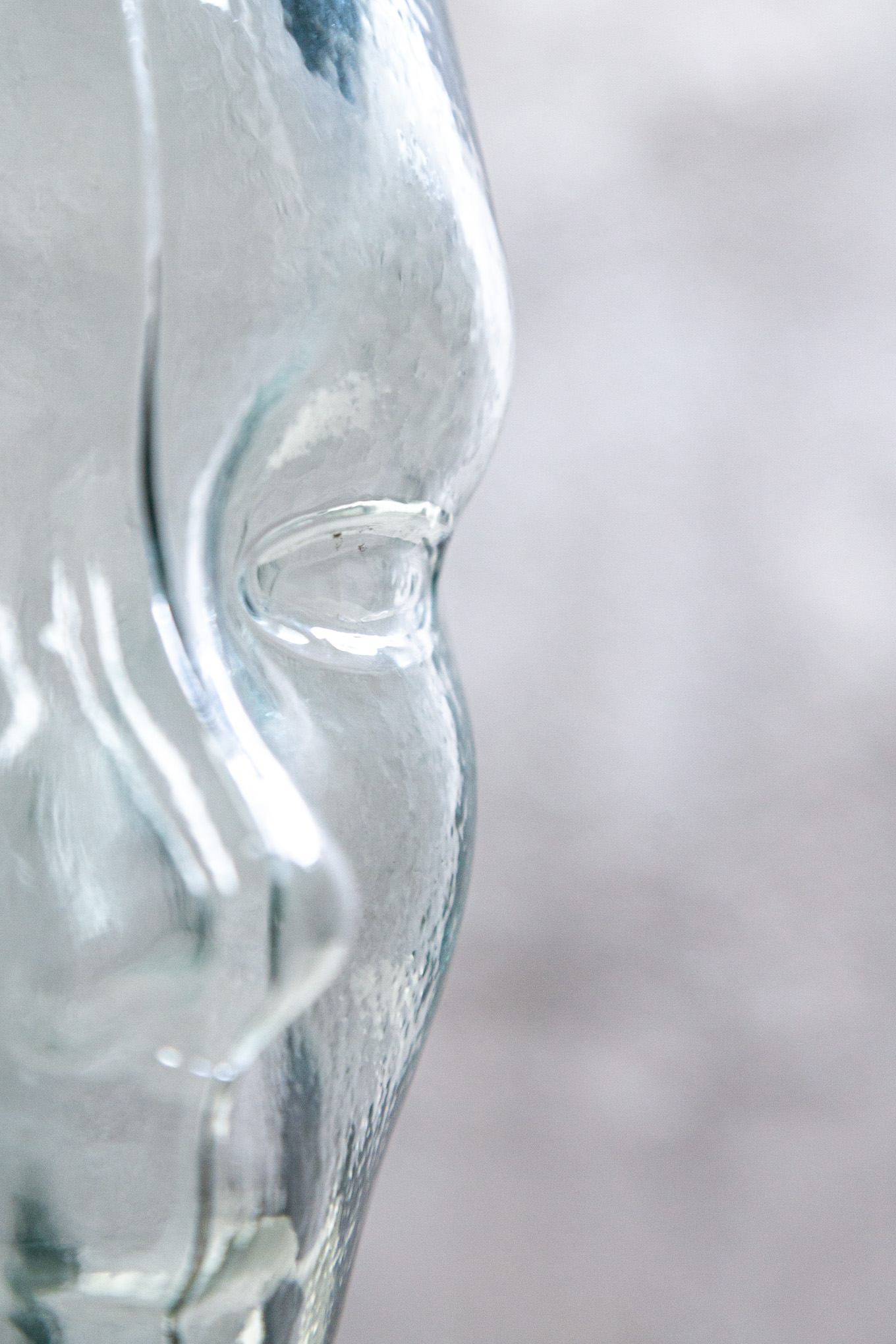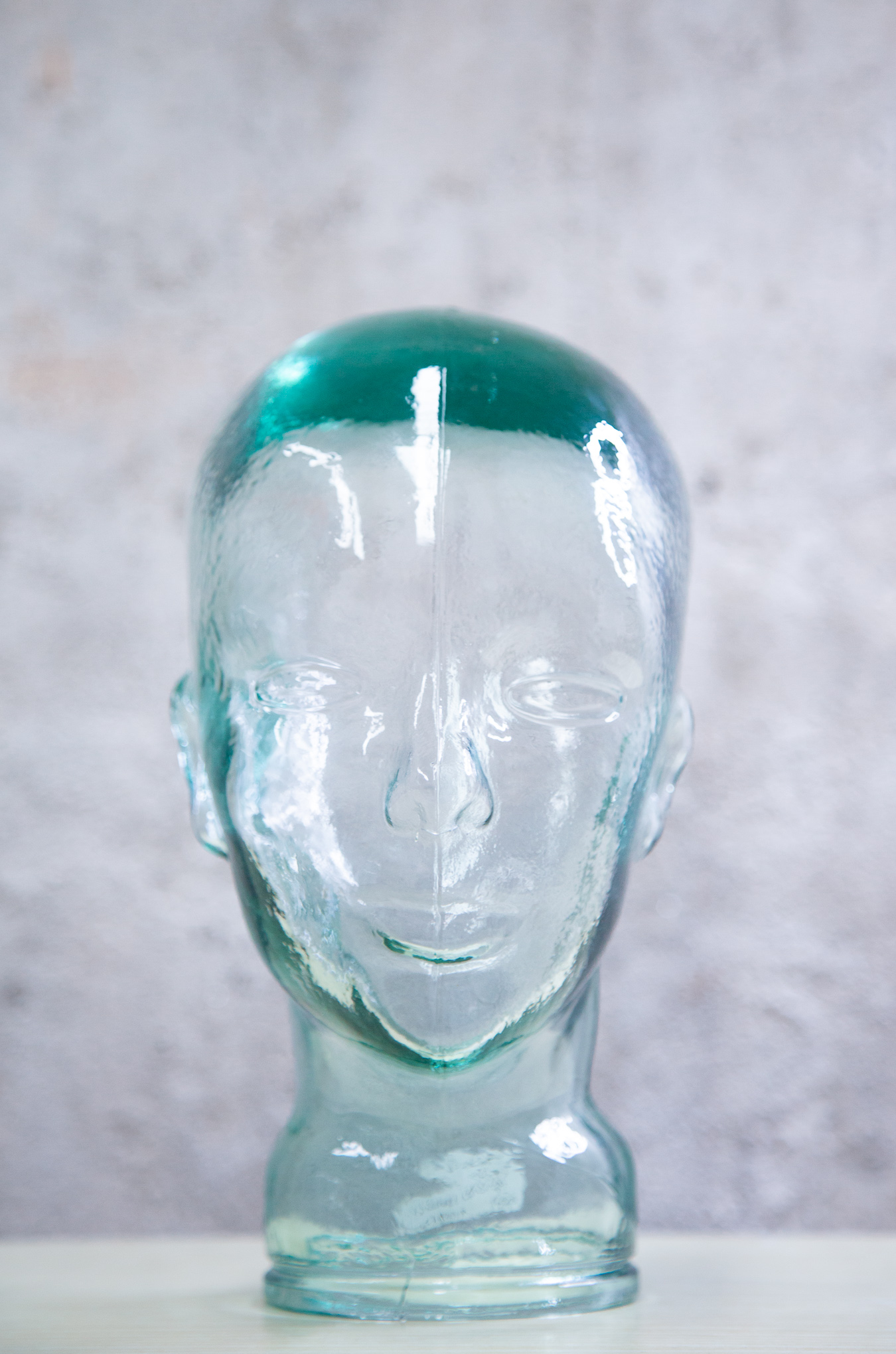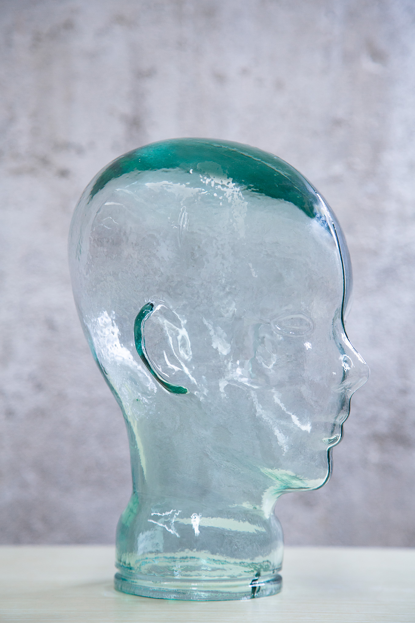 Cabeza de cristal, hueca por dentro, tamaño real.