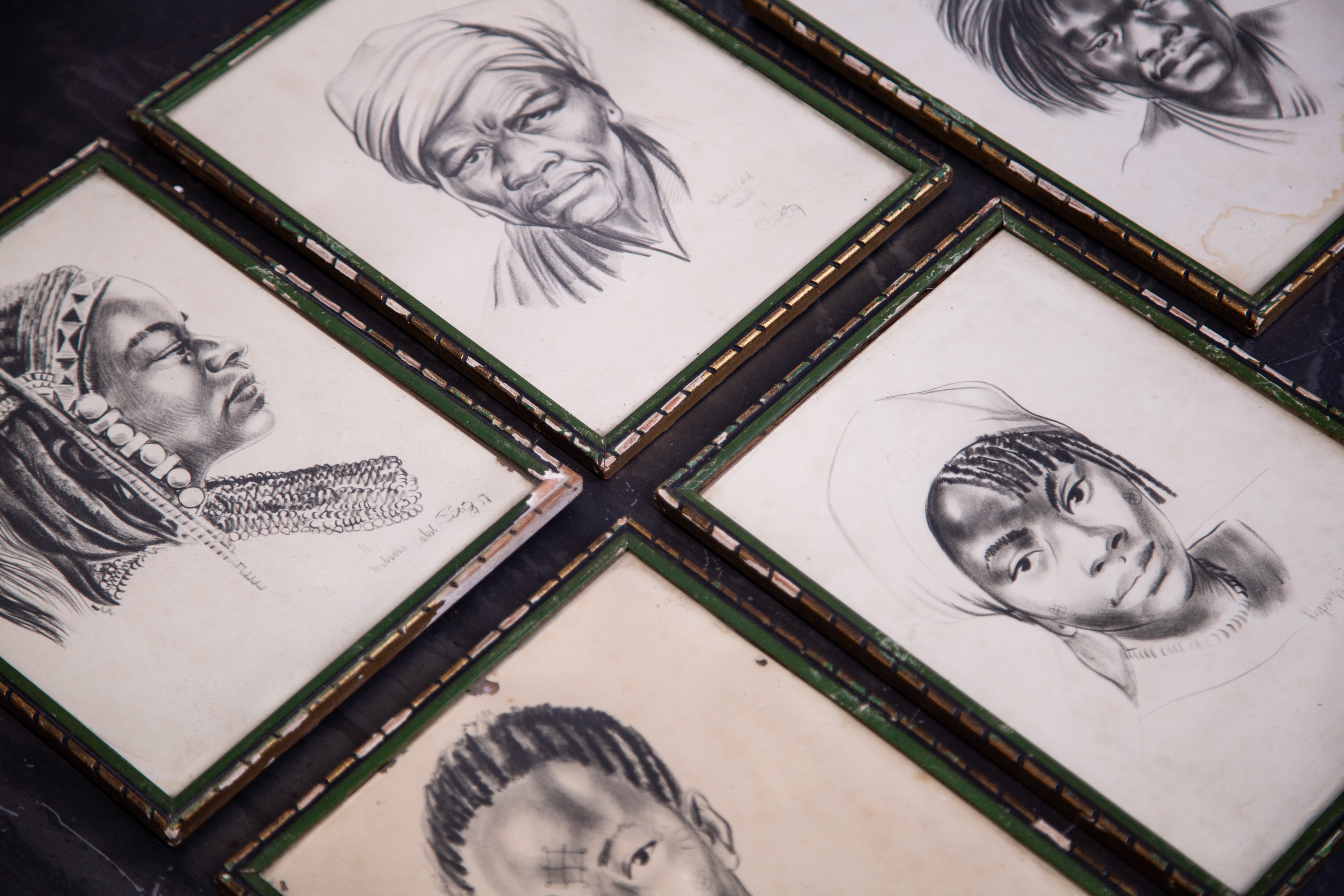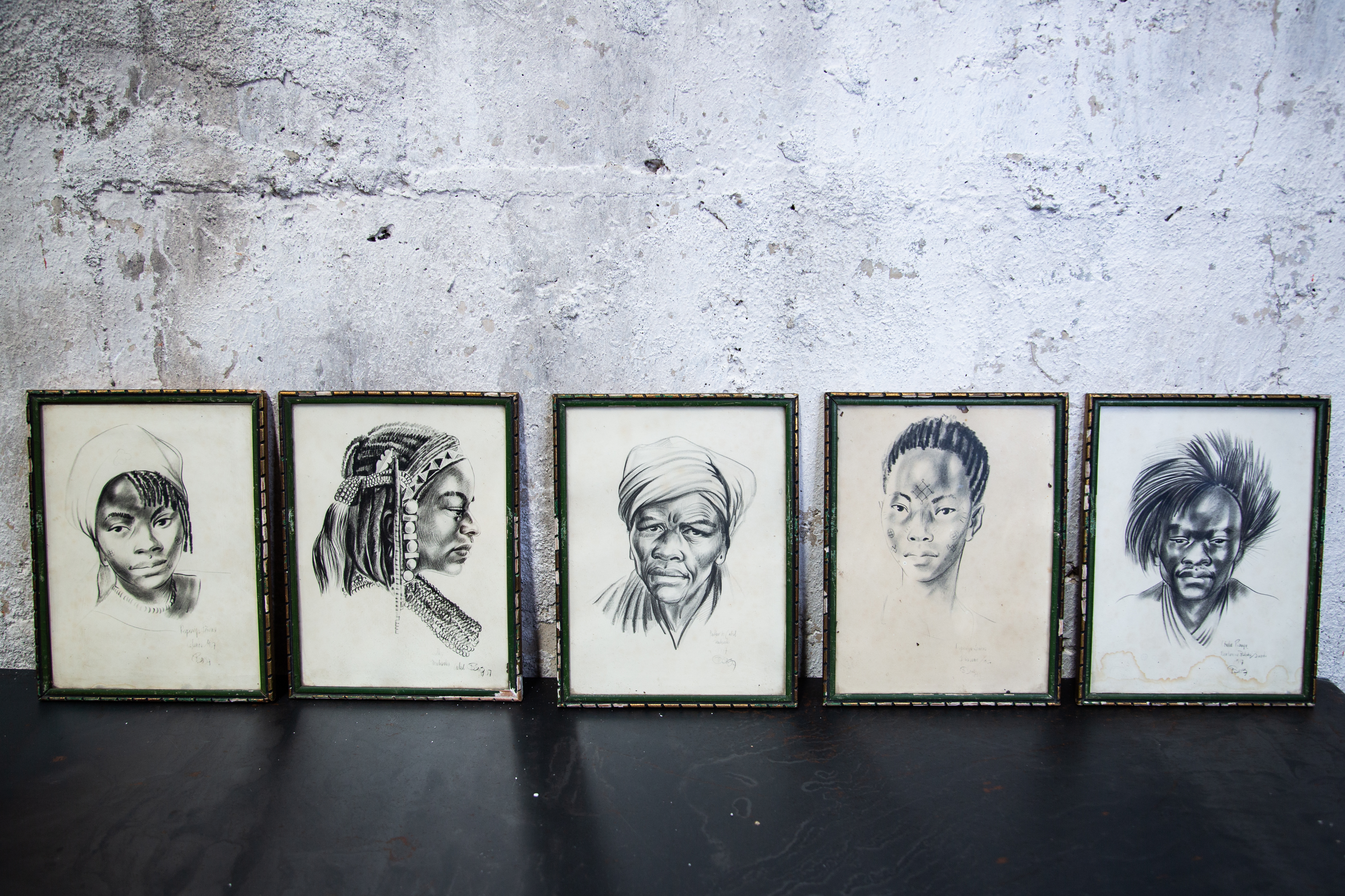 Retrato carboncillo marco verde 1